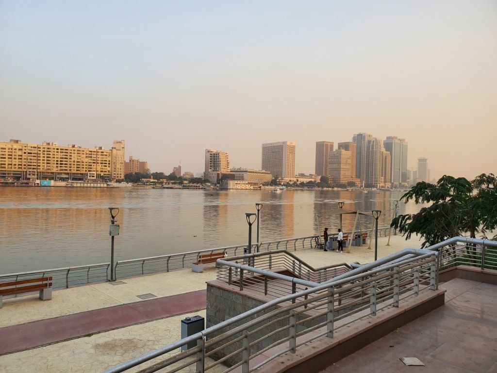 But I still wanted to take some pictures of Nile and to get some “Nile experience”. Luckily I managed to do it by going to northern tip of Zamelek island (from metro station Safaa Hegazy). There was a very beautiful walkway at the bank of Nile. It was very quiet and beautiful and probably also a good spot for watching sunset. The Nile views were very good. (Even though for whatever reason the mentioned beautiful walkway was actually not open yet and I had to enjoy it all from behind the fence… but everyone else was doing the same and all the seating spots on the fence were taken for hundred meters)🙂